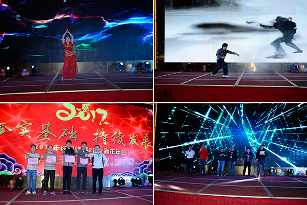 此次年會(huì)在一段動(dòng)感熱辣的舞蹈秀中拉開帷幕,中間穿插的幸運(yùn)抽獎(jiǎng)及搶紅包的環(huán)節(jié)更是將晚會(huì)推向一個(gè)又一個(gè)高潮。公司年會(huì)不僅給大家?guī)?lái)了歡聲笑語(yǔ),同時(shí)也讓同事之間彼此的心更加貼近。公司領(lǐng)導(dǎo)與員工親情互動(dòng)、激動(dòng)人心的抽獎(jiǎng)活動(dòng)、精彩紛呈的舞蹈、魔術(shù)、唱歌、小品、武術(shù)、互動(dòng)游戲等,讓歌聲、掌聲、歡呼聲在會(huì)場(chǎng)上空久久回蕩。整場(chǎng)晚會(huì)高潮迭起,呈現(xiàn)出?;圻@個(gè)大家庭的歡樂與和諧。